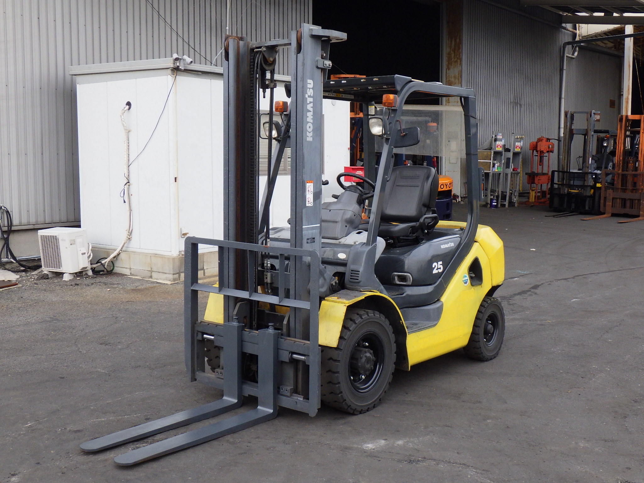 Xe nâng dầu 2.5 tấn 4 mét Komatsu FD25T-17 Xe nâng Nhật bãi, đã qua sử dụngSản xuất tại Nhật Bản 2011Model FD25T-17Tải trọng nâng 2500kg tại tâm tải 500mmChiều cao nâng 3700mm, trục nâng 2 tầngĐộng cơ Komatsu 4D94LE...