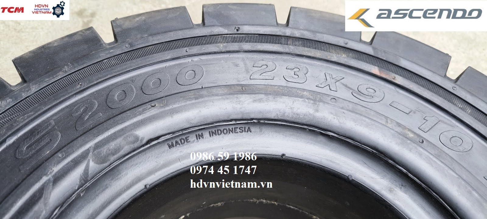 Tag: 23x9-10, ascendo, lốp đặc, lop dac, solid tire, lốp xe nâng điện, S2000, indonexia
