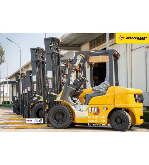 Lốp đặc Dunlop 600-9 và lốp đặc Dunlop 700-12 lắp trên xe nâng 2 tấn, 2.5 tấn CAT Caterpillar DP20 DP25