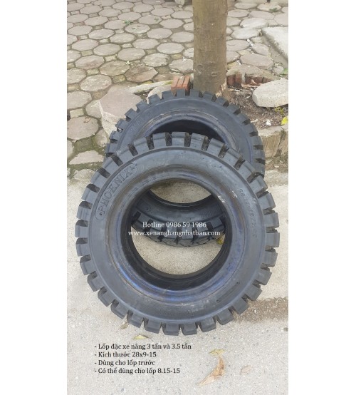 Tag: Phoenix, 28x9-15, 815-15, 8.15-15, lốp đặc, xe nâng 3 tấn, cushion, solid, thailand
