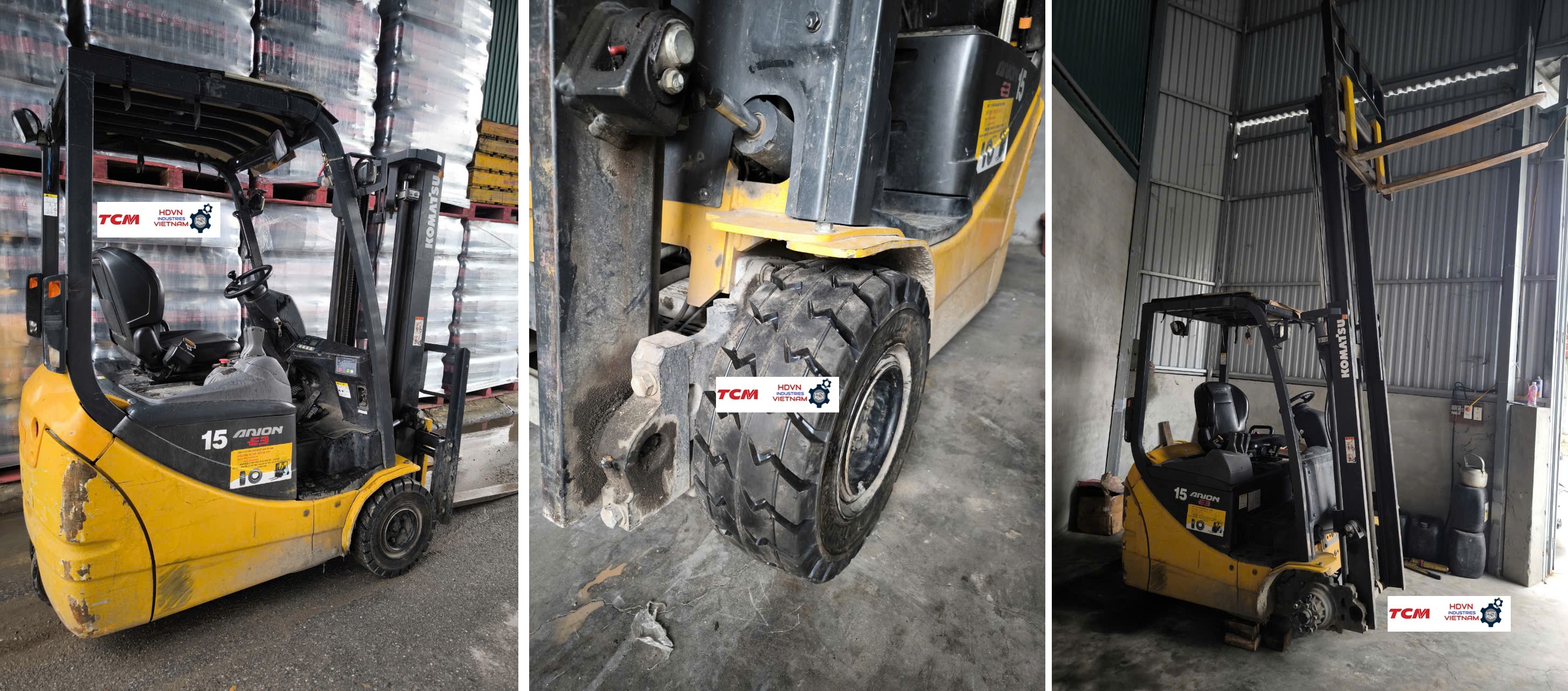 Thay lốp đặc 18x7-8 Thunderpro, 16x6-8 Komachi, 15x4.5-8 Komachi cho xe nâng điện 1.5 tấn Komatsu FB15-12, FBM15-12 tại KCN Ngọc Hồi