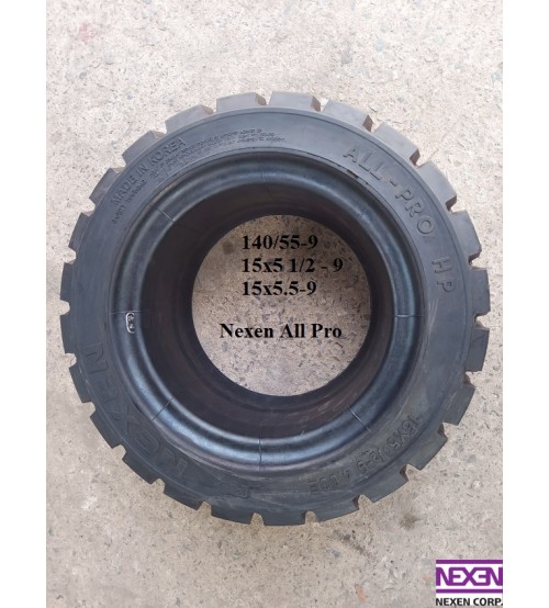 Vỏ đặc xe nâng 140/55-9, hay còn gọi là vỏ đặc 15x5.5-9, hay tên khác 15x5 1/2-9, mới 100%, nhãn hiệu Nexen All Pro, sản xuất tại Hàn Quốc.