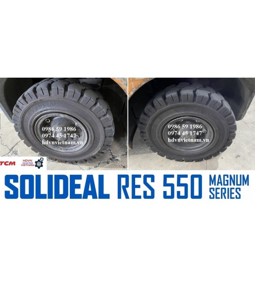 - Lốp đặc Solideal RES 550 Magnum: xe nâng chạy 8~15h/ngày, có càng kẹp nặng, xe leo container