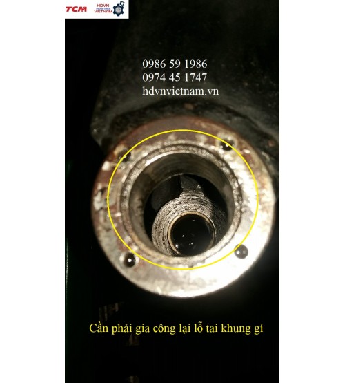 - Bộ trục ắc phi dê, bạc đạn, lỗ tai khung gí bị hỏng. Cần đại tu toàn bộ