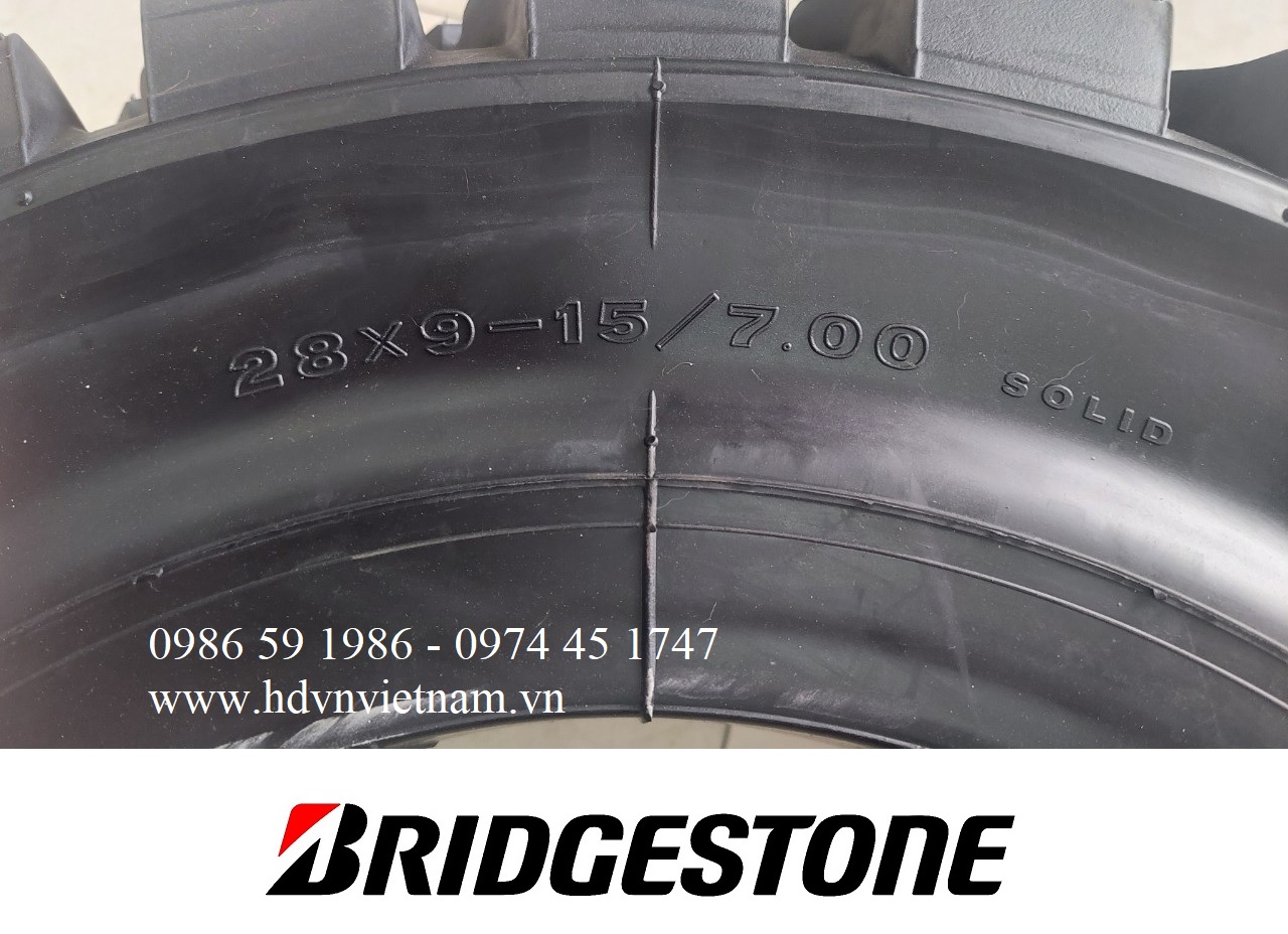 LỐP ĐẶC XE NÂNG 3 TẤN, MÃ 28x9-15, HIỆU BRIDGESTONE - SẢN XUẤT TẠI NHẬT BẢN