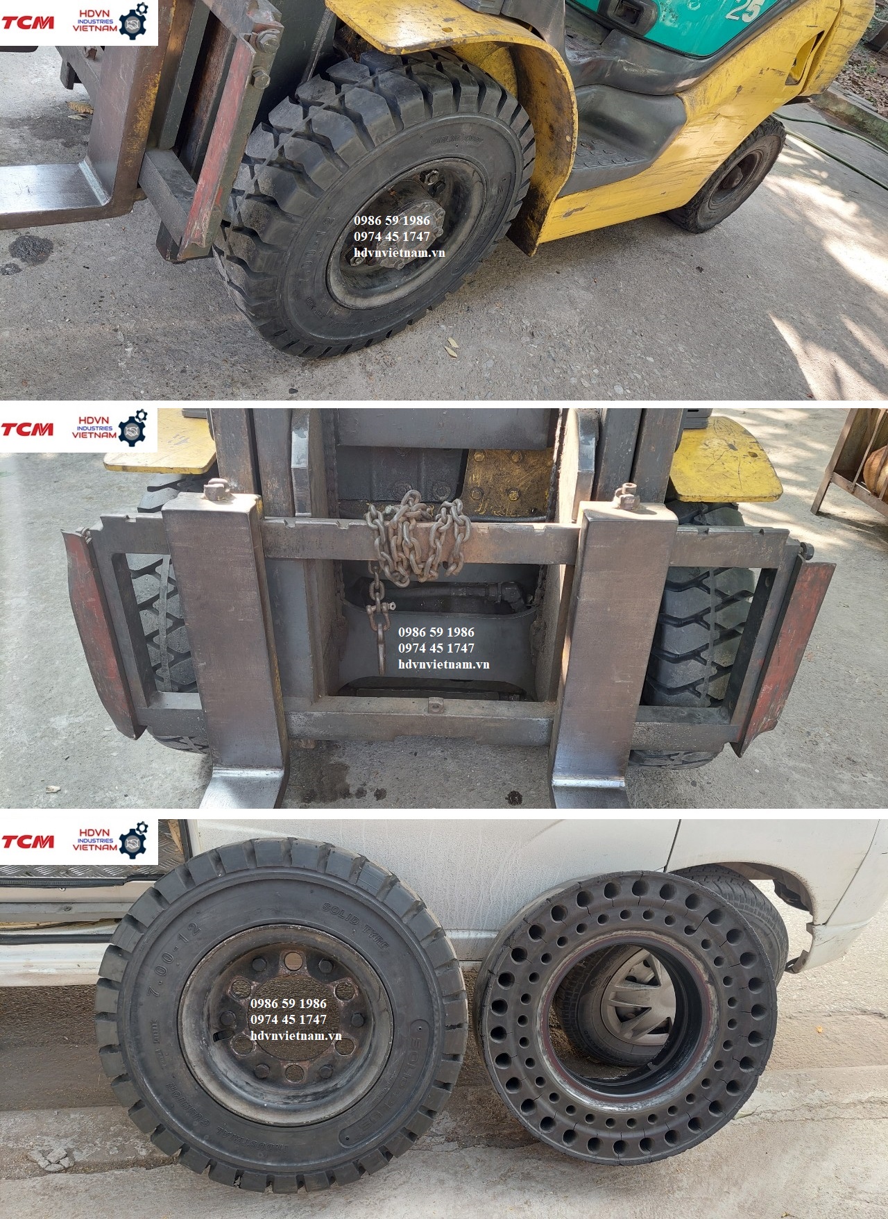 Đại tu bảo dưỡng xe nâng 2.5 tấn TCM FD25T4 máy Kubota V2403 và thay lốp xe nâng 600-9 700-12 Phoenix